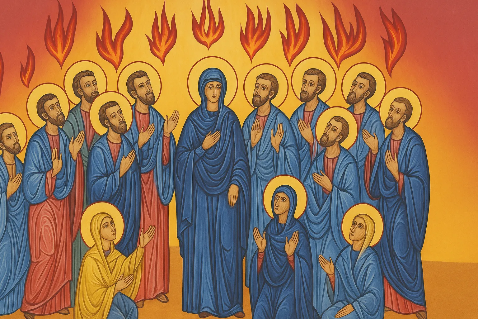 Red: The liturgical color for Pentecost, representing the fire of the Holy Spirit.